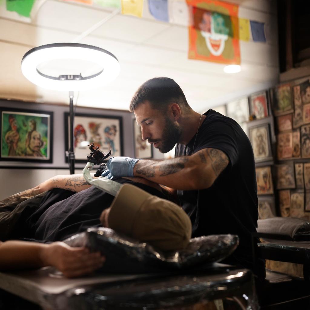 tatuador apaixonado por transformar histórias em arte permanente. Com mais de 8 anos de experiência, ele se especializa em traços finos, realismo e estilos personalizados, sempre buscando criar tatuagens únicas que traduzem a essência de cada cliente. sua missão é proporcionar uma experiência especial, criando obras de arte que vão além da pele. Entre em contato para agendar sua próxima tatuagem e eternizar sua história de forma única.